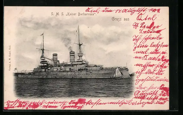 AK Kriegsschiff SMS Kaiser Barbarossa im Hafen