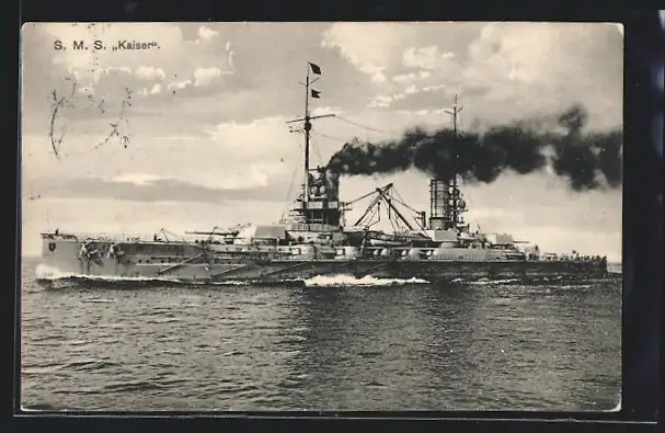 AK Kriegsschiff S.M.S. Kaiser in voller Fahrt