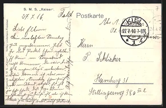 alte Ansichtskarte, gelaufen 1916, Eckknicke li., guter Zustand