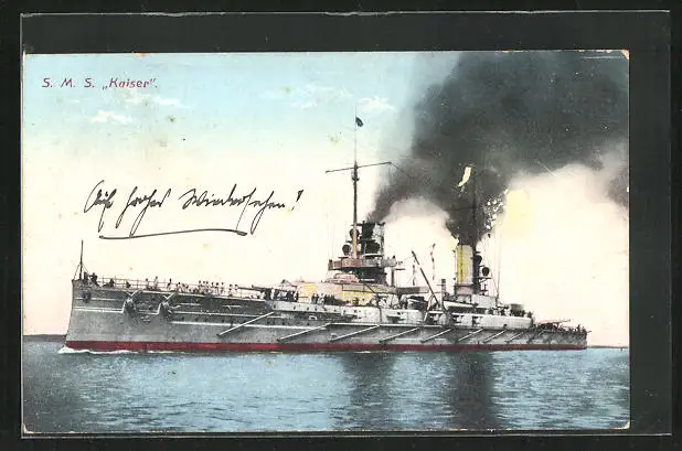 AK Kriegsschiff SMS Kaiser vor der Küste