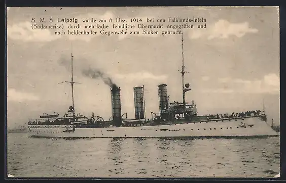 AK Kriegsschiff S.M.S. Leipzig vom Ostasiengeschwader auf See