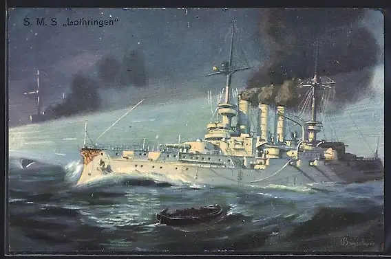 AK Kriegsschiff S.M.S. Lothringen in Scheinwerferbeleuchtung