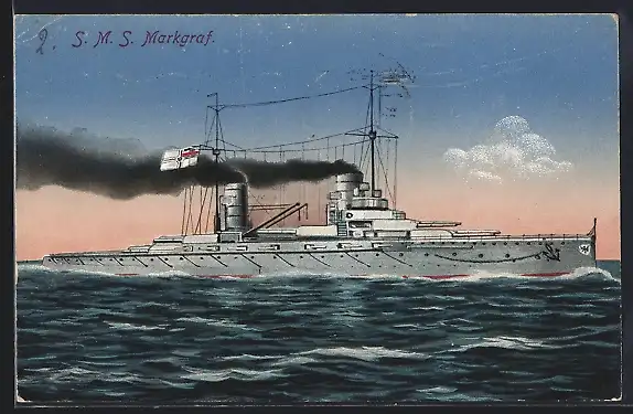 AK Kriegsschiff S.M.S. Markgraf unter Volldampf
