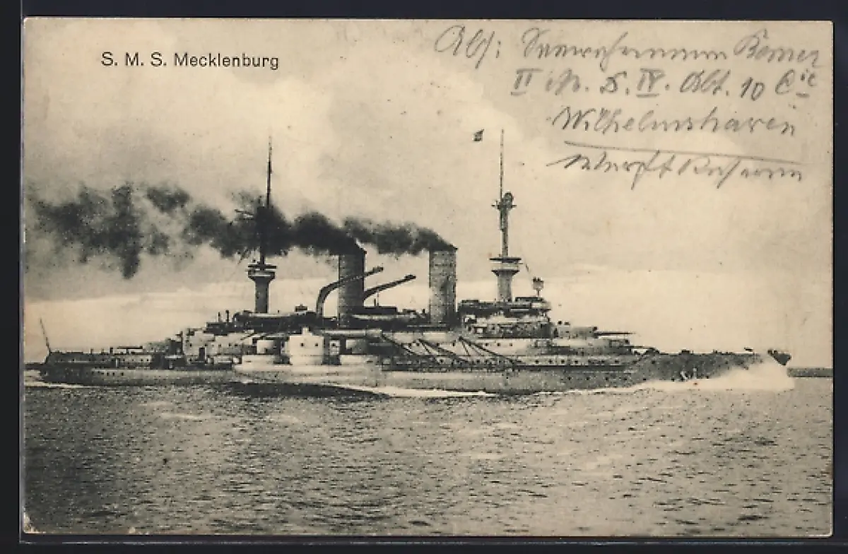 AK Kriegsschiff SMS Mecklenburg in voller Fahrt