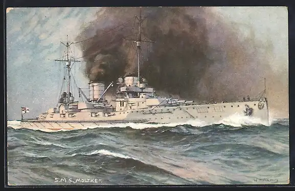 AK Kriegsschiff S.M.S. Moltke auf stürmischer See
