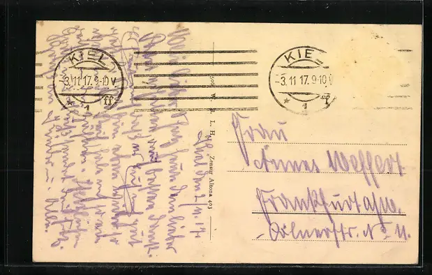 alte Ansichtskarte, gelaufen 1917, Briefmarke entfernt, guter Zustand