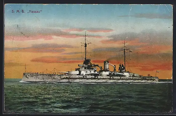 AK Kriegsschiff S.M.S. Nassau in voller Fahrt