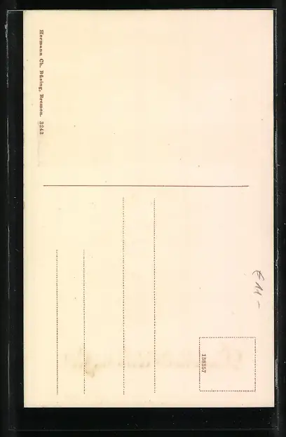 Personenbezogene Daten auf der Rückseite der Karte wurden durch blauen Textmarker unkenntlich gemacht. Die blauen Stellen sind auf die Vorderseite durchgeweicht und wirken sich negativ auf das Postkartenfoto aus