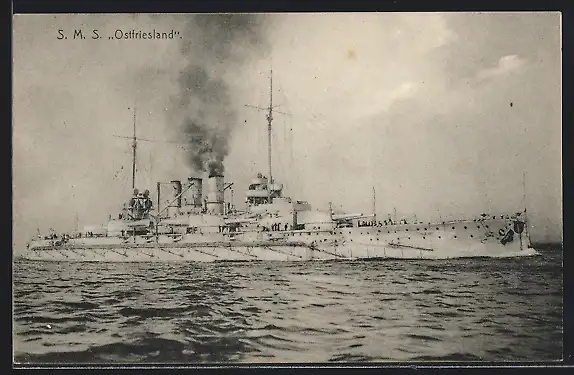 AK Kriegsschiff SMS Ostfriesland auf See
