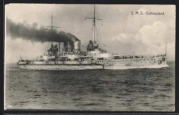 AK Kriegsschiff SMS Ostfriesland in voller Fahrt