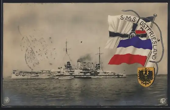 AK Kriegsschiff S.M.S. Ostfriesland und Reichskriegsflagge