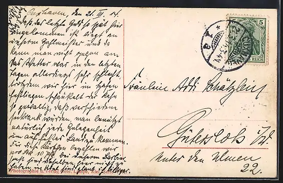 alte Ansichtskarte, gelaufen 1914, Stempelspur, guter Zustand