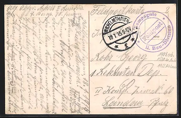 alte Ansichtskarte, gelaufen 1915, Eckknick li. unten, guter Zustand