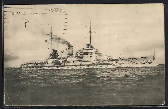 AK Kriegsschiff SMS Posen schneidet durchs Wasser