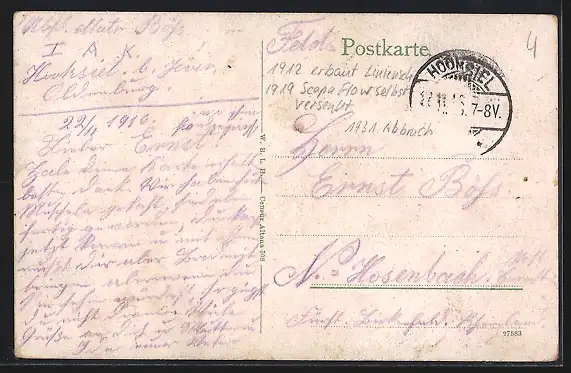 alte Ansichtskarte, gelaufen 1916, Eckknicke oben, guter Zustand