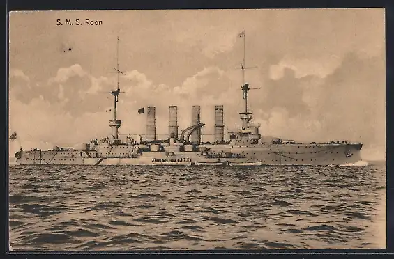 AK Kriegsschiff SMS Roon in forcierter Fahrt