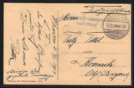 alte Ansichtskarte, gelaufen 1914, guter Zustand