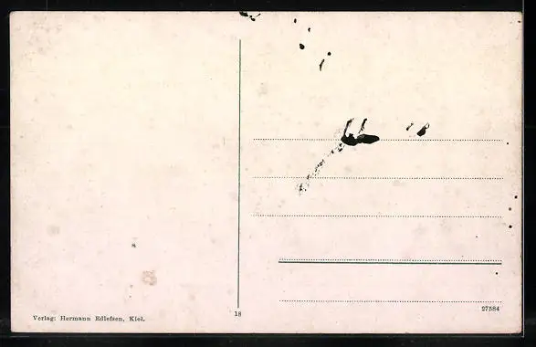 Personenbezogene Daten auf der Rückseite der Karte wurden durch blauen Textmarker unkenntlich gemacht. Die blauen Stellen sind auf die Vorderseite durchgeweicht und wirken sich negativ auf das Postkartenfoto aus