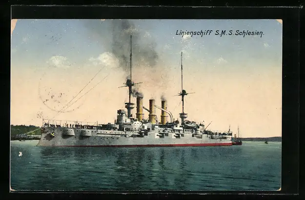 AK Kriegsschiff S.M.S. Schlesien vor einer Küste