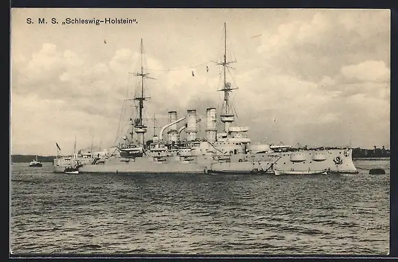 AK Kriegsschiff SMS Schleswig-Holstein nahe der Küste