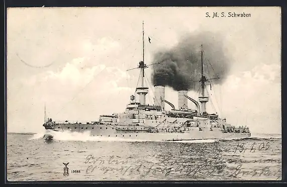 AK Kriegsschiff SMS Schwaben unter Volldampf
