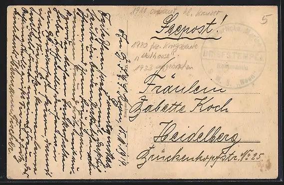alte Ansichtskarte, gelaufen 1914, Eckknick li. unten, guter Zustand