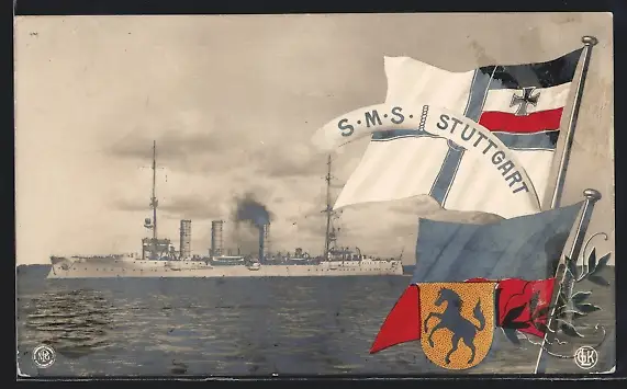 AK Kriegsschiff SMS Stuttgart nimmt Fahrt auf, Reichskriegsflagge