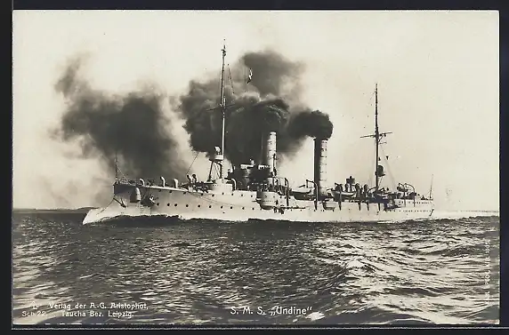 AK Kriegsschiff SMS Undine unter Volldampf