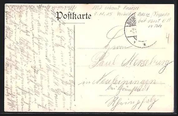alte Ansichtskarte, gelaufen, Briefmarke entfernt, rückseitig Oberflächenschaden, guter Zustand