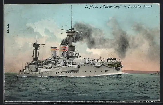 AK Kriegsschiff SMS Weissenburg vom Ostasiengeschwader in forcierter Fahrt