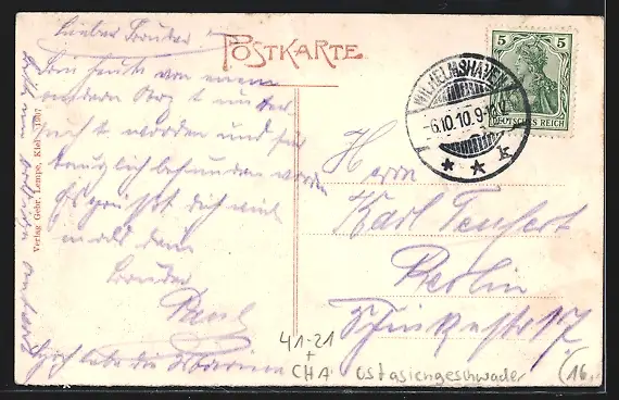 alte Ansichtskarte, gelaufen 1910, guter Zustand