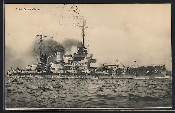 AK Kriegsschiff SMS Westfalen unter Volldampf