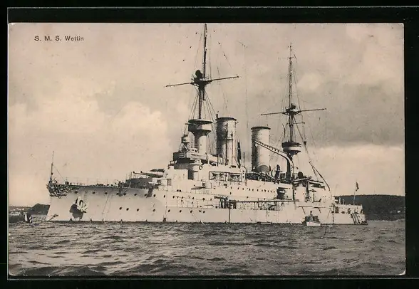 AK Kriegsschiff SMS Wettin am Liegeplatz
