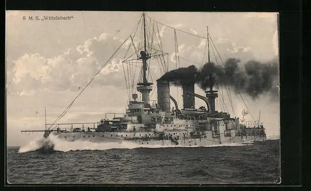 AK Kriegsschiff SMS Wittelsbach gibt Volldampf