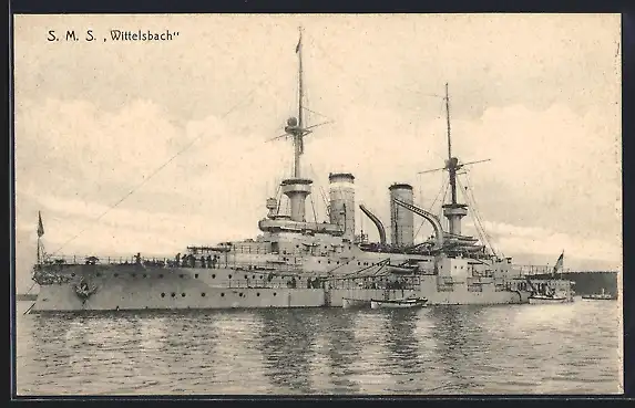 AK Kriegsschiff SMS Wittelsbach in Fahrt