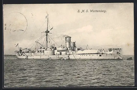 AK Kriegsschiff SMS Württemberg liegt vor Anker, Beiboote längsseits