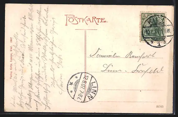 alte Ansichtskarte, gelaufen 1907, Stempelspur, guter Zustand