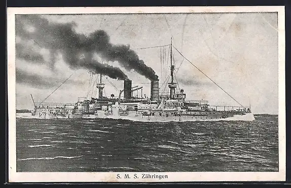 AK Kriegsschiff SMS Zähringen in voller Fahrt