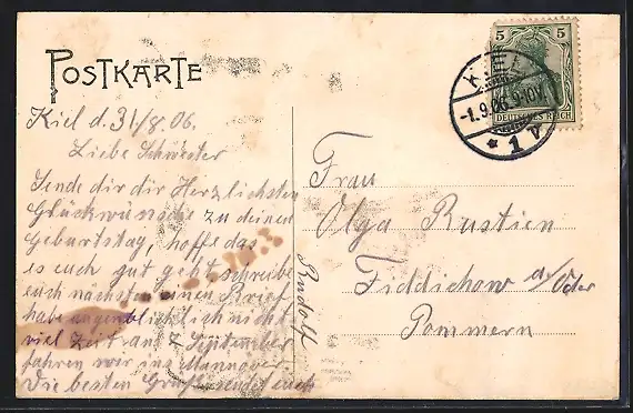 alte Ansichtskarte, gelaufen 1906, guter Zustand