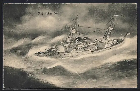 AK Kriegsschiff auf stürmischer See