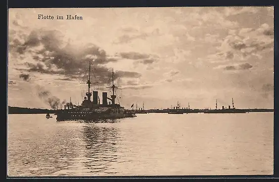 AK Kriegsschiff der Flotte der Kaiserlichen Marine im Hafen