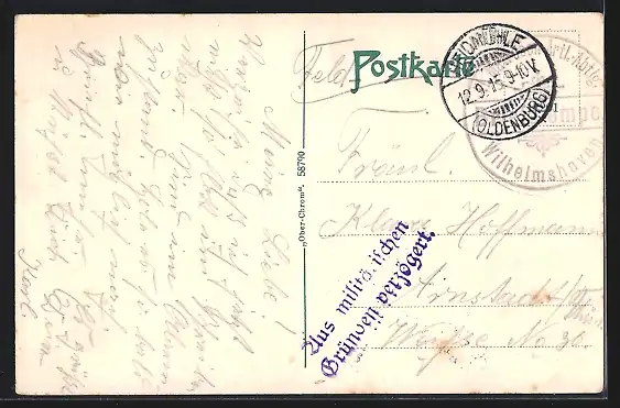 alte Ansichtskarte, gelaufen 1915, Eckknicke links u. rechts, leichte Bugspur mit minimalem Einriss oben re., guter Zustand
