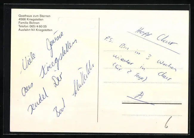 Personenbezogene Daten auf der Rückseite der Karte wurden durch blauen Textmarker unkenntlich gemacht. Die blauen Stellen sind auf die Vorderseite durchgeweicht und wirken sich negativ auf das Postkartenfoto aus