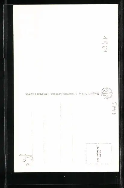 Personenbezogene Daten auf der Rückseite der Karte wurden durch blauen Textmarker unkenntlich gemacht. Die blauen Stellen sind auf die Vorderseite durchgeweicht und wirken sich negativ auf das Postkartenfoto aus
