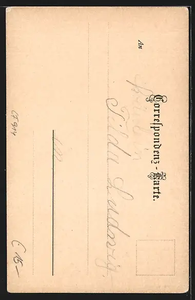Personenbezogene Daten auf der Rückseite der Karte wurden durch blauen Textmarker unkenntlich gemacht. Die blauen Stellen sind auf die Vorderseite durchgeweicht und wirken sich negativ auf das Postkartenfoto aus