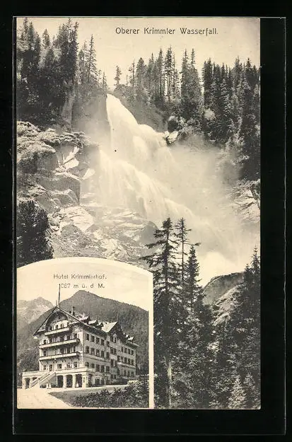 AK Krimml, Hotel Krimmlerhof, Oberer Krimmler Wasserfall