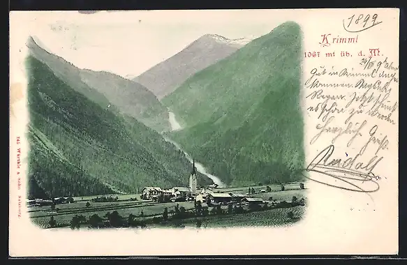 AK Krimml, Ortsansicht mit Blick in die Berge