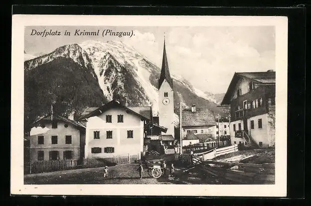 AK Krimml /Pinzgau, Dorfplatz mit Kirche