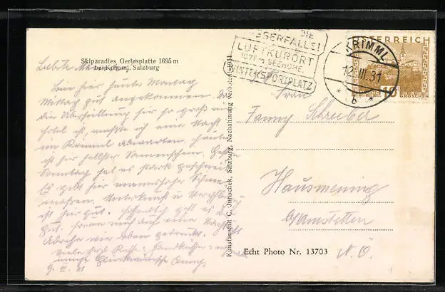alte Ansichtskarte, gelaufen 1931, guter Zustand
