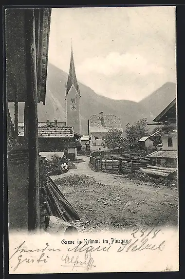 AK Krimml i. Pinzgau, Gasse mit Blick zur Kirche
